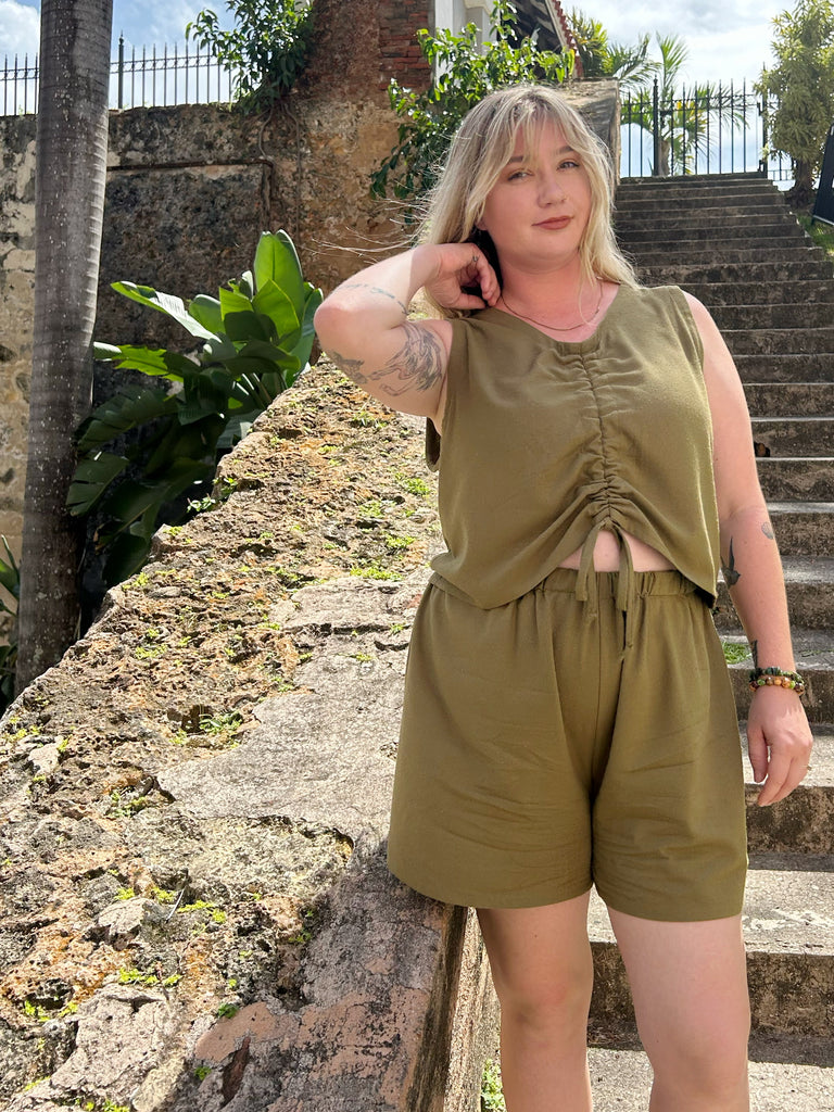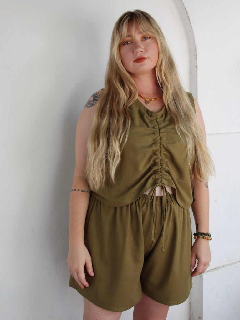 Slightly cropped, adjustable front tie cinch